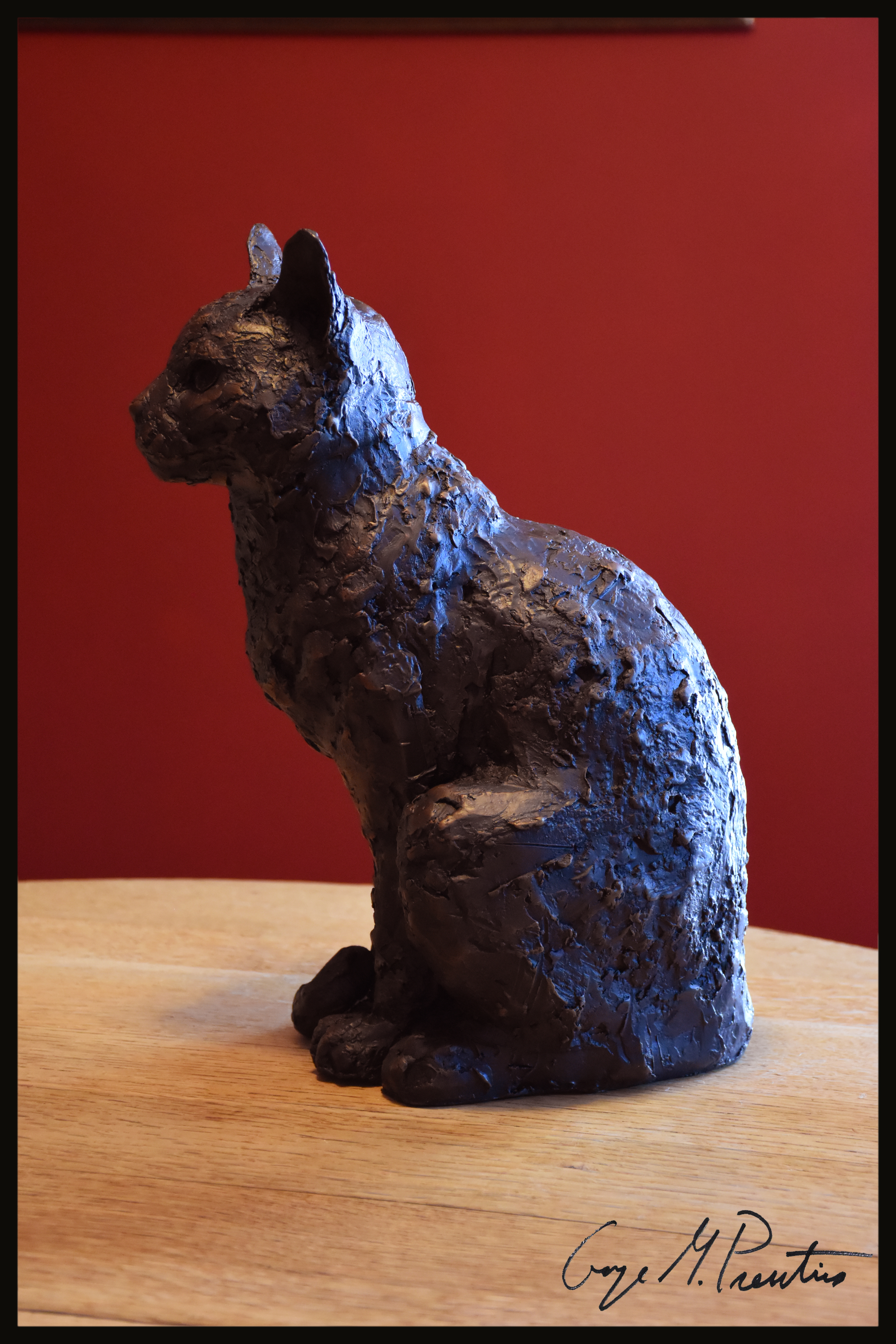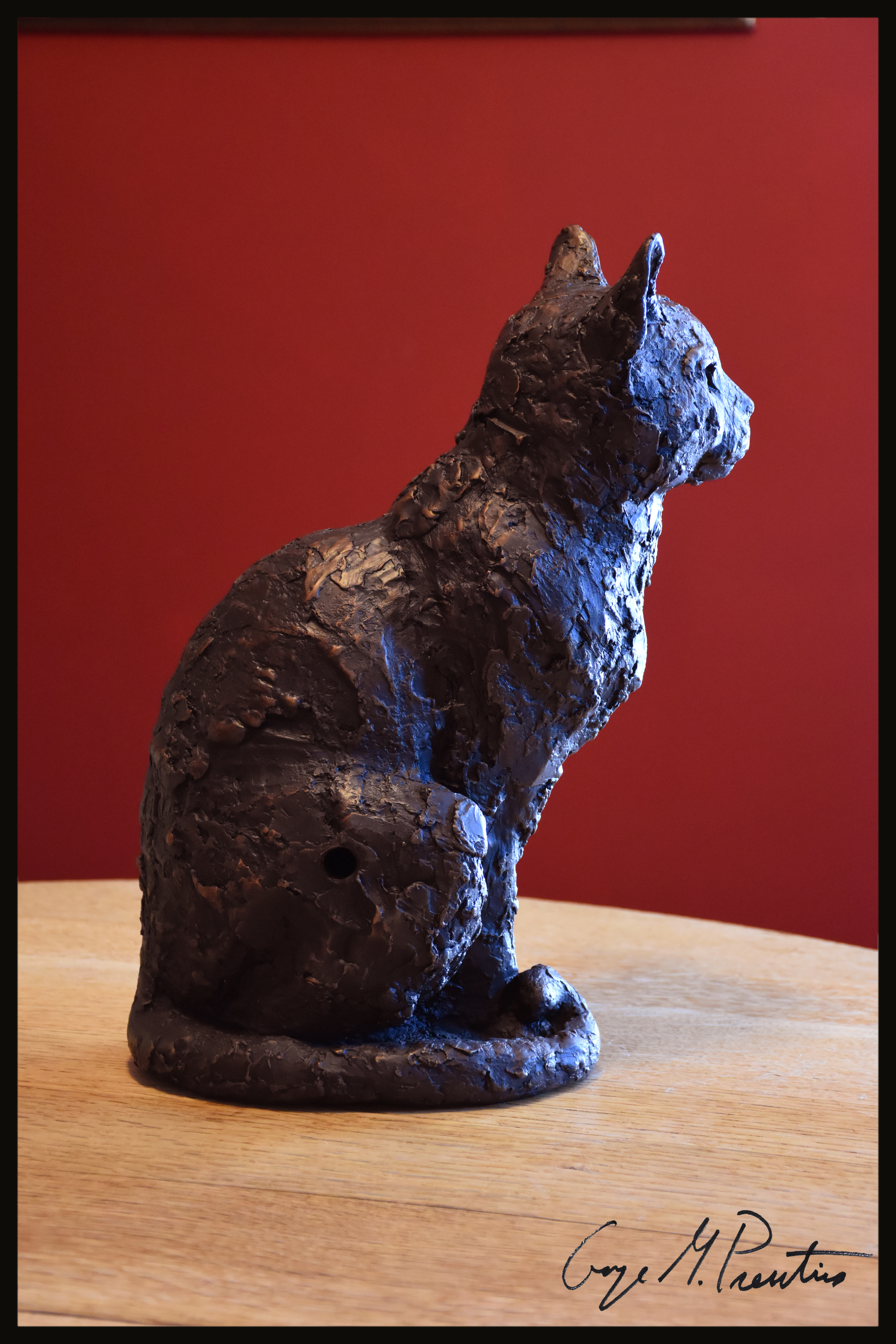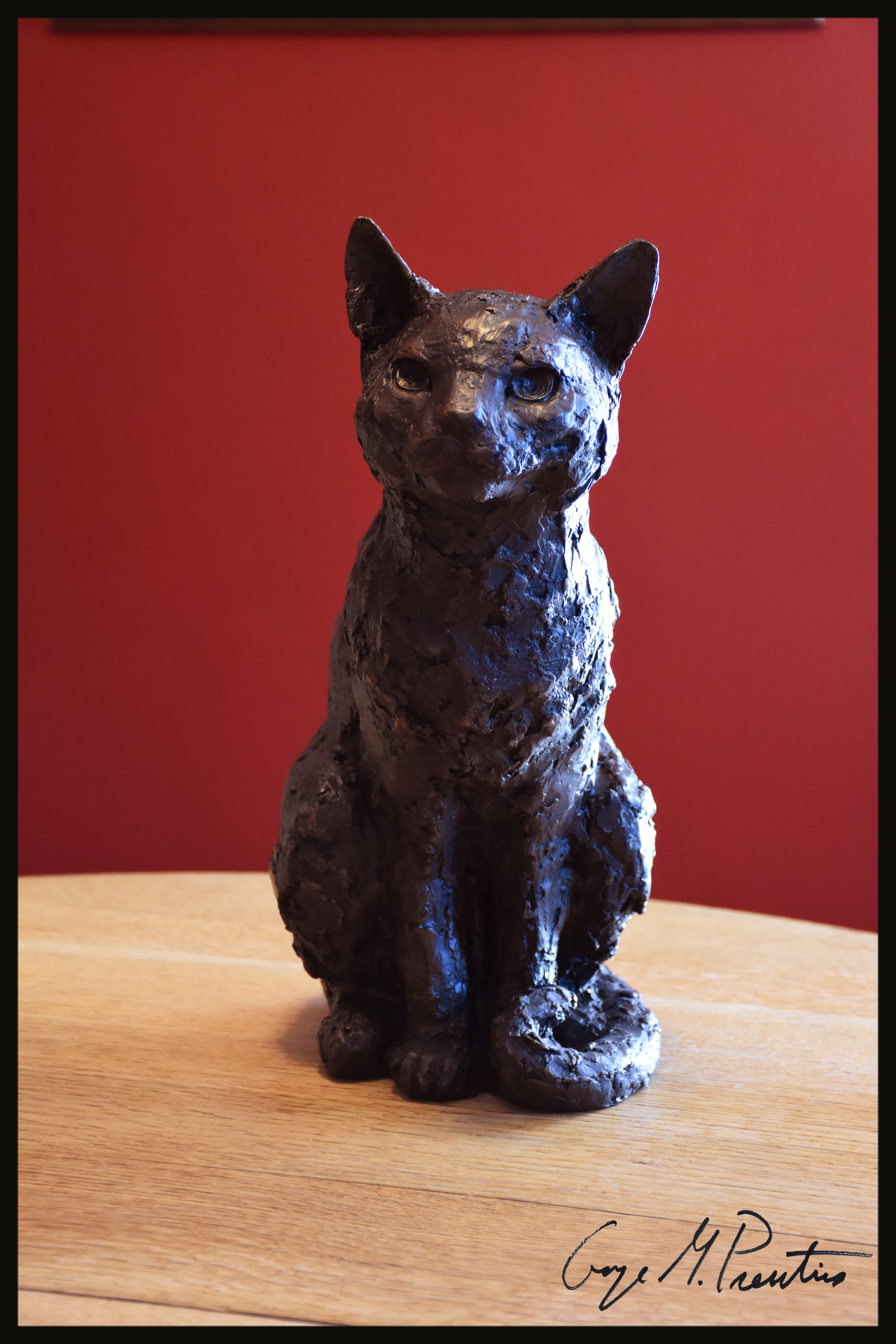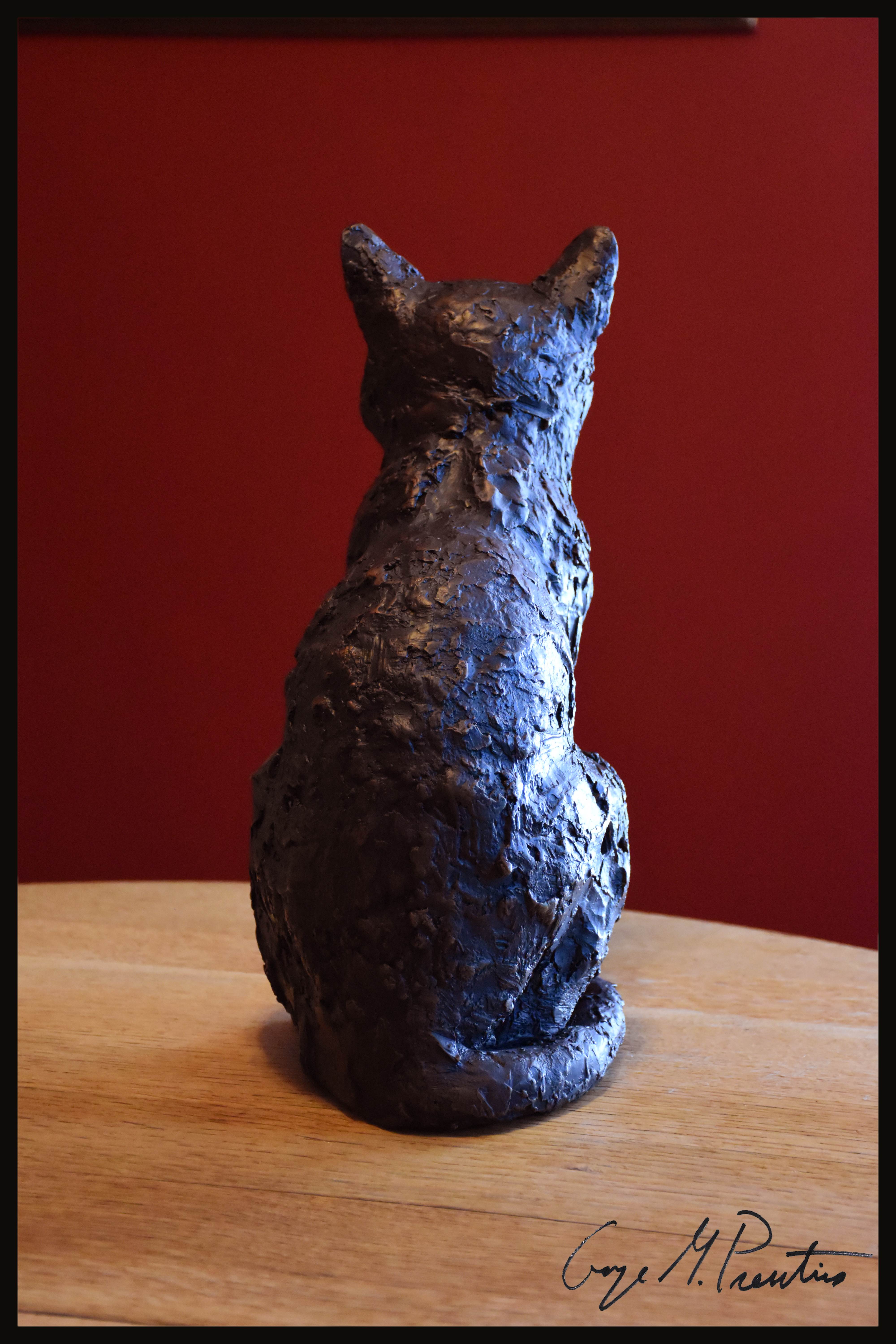 The finished bronze statue of H. P Lovecraft, delivered, awaiting placement.