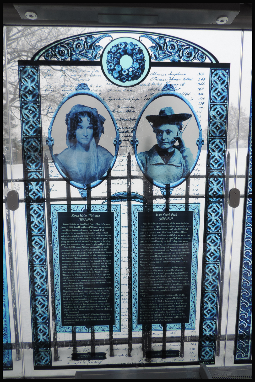 Here are some pictures of the “Remember Me As You Pass By” bus shelter I designed for Providence and RIPTA. The stop is in front of the North Burial Ground. In order to engage the local community with their past, I chose to include the portraits and histories of 8 important Providence natives of different genders, races and economic backgrounds. All of the subjects are buried in the cemetery, and all imagery was photo shoped and drawn from statuary, gravestones and plaques within the cemetery. Special thanks to the RIHS and history department at RIC for their fact checking and input.
