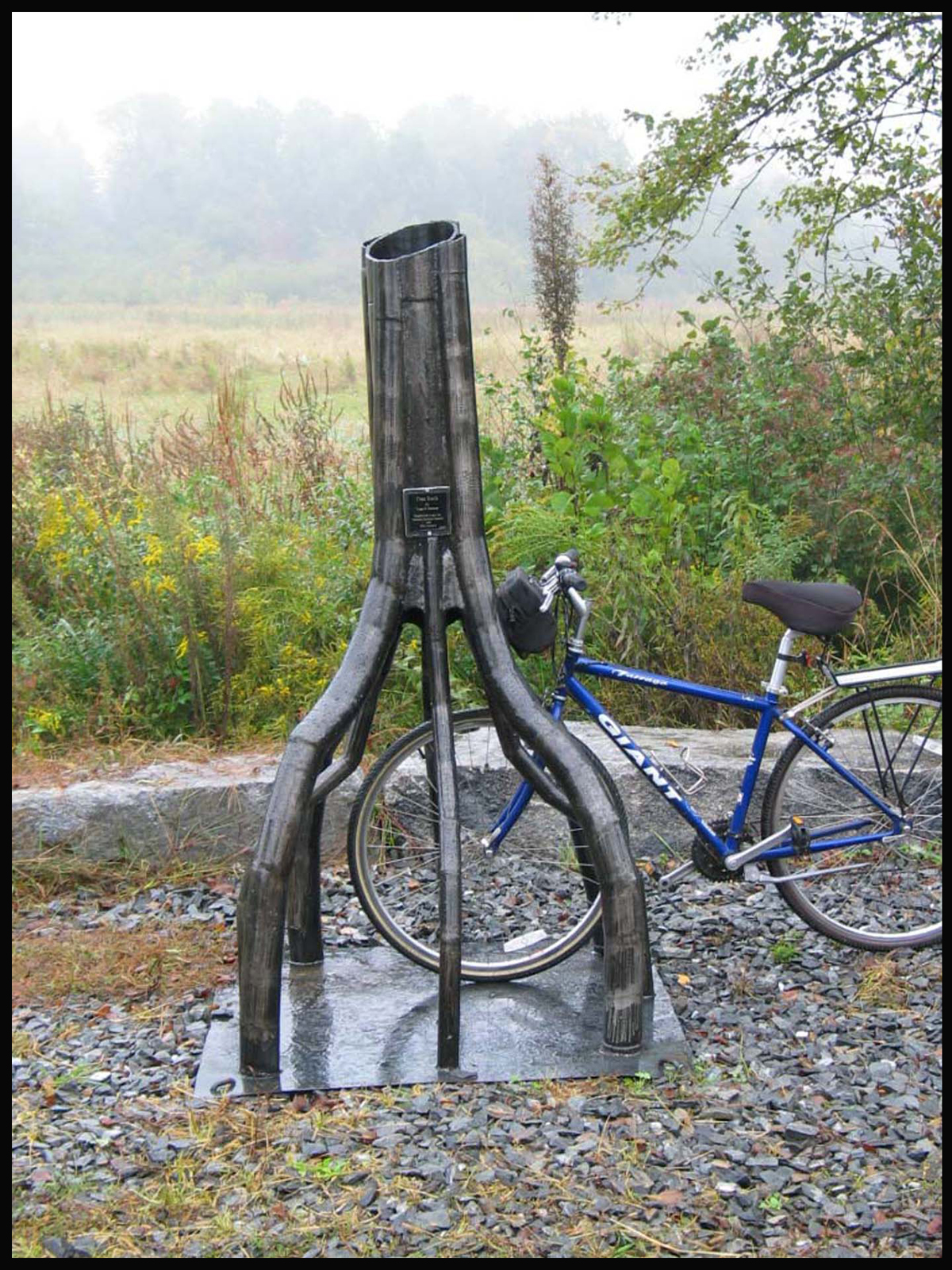 Here is a cypress tree inspired bike rack I designed and built for the Rail Trail that runs through Groton, Massachusetts.