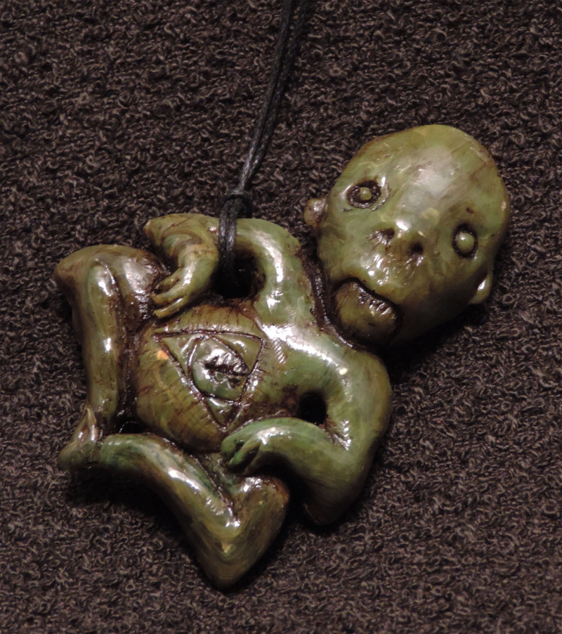 The Jade talisman was confiscated from a young deckhand named Jameson at his admission to the Sussex Lunatic Asylum in 1848. He had been commissioned on the Clipper ship, Cricket, during its trade circuit to New Zealand and Australia. Jameson had purchased the amulet from a Maori merchant who traded in jade. The Merchant had said it would protect him from the Ika Tane, or Fish Men, that lived in cities off the coast. Jameson was found a week later aboard the Cricket, near death from exposure, hiding in a large coil of rope. All other hands had vanished. Jameson had claimed that the Ika Tane had “calmed the sea with frog song” and “taken everyone on board under the waves.” He claimed that the amulet had saved his life, and was loath to be separated from it. Investigators were at a lost to piece together what happened on the Cricket. There was no sign of violence, or theft from the valuable cargo. The mysterious amulet passed hands many times, and over the years, others like it have surfaced all over the world.