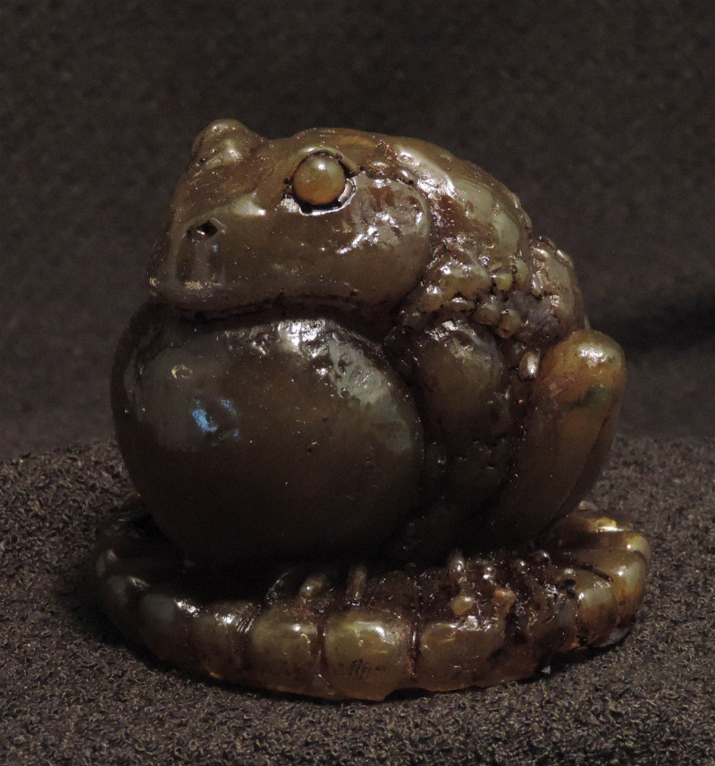 The origins of the Toad are steeped in mystery. It was first recorded in the postmortem effects of a soldier who had drowned coming home from the Korean War. He had simply walked off of the side of the ship one night after claiming to have heard the most beautiful sound. From there it passed from family to family, antique shop to antique shop, gaining notoriety from the one thing all its subsequent owners had in common. Rich or poor, meek or powerful, they all died by self afflicted drowning. Though considered a cursed object, it is still bought and sold.