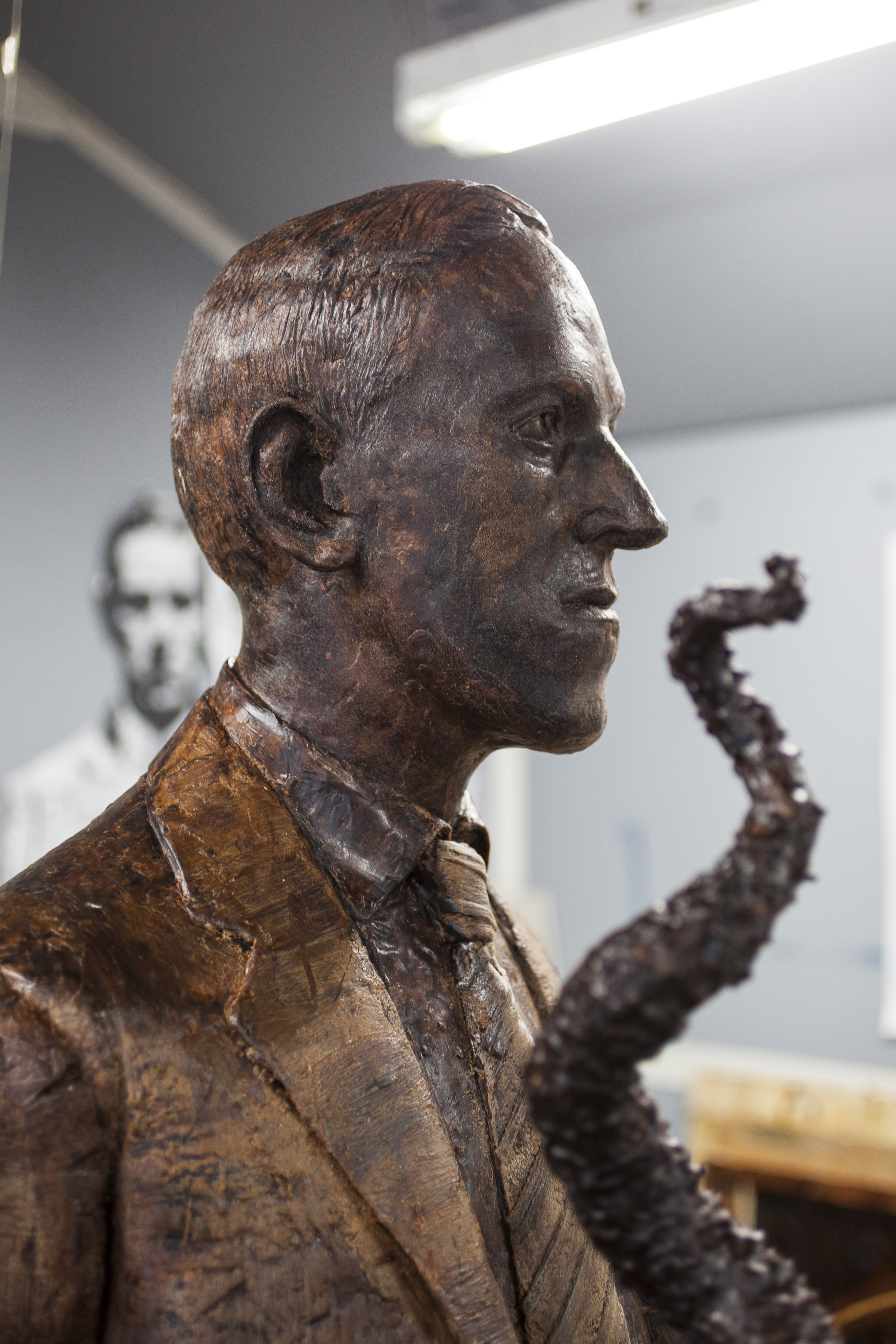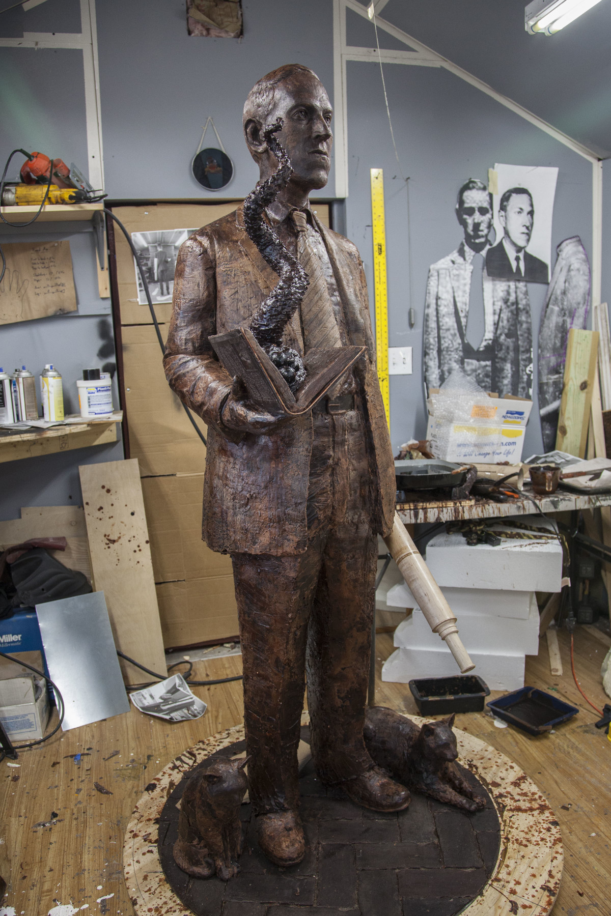 Here are pictures of the life size, bronze statue of H. P. Lovecraft I made for the Lovecraft community. These show images from the proof of concept maquette all the way to delivery of the piece to await final placement. Start from the bottom and scroll up for the journey : )