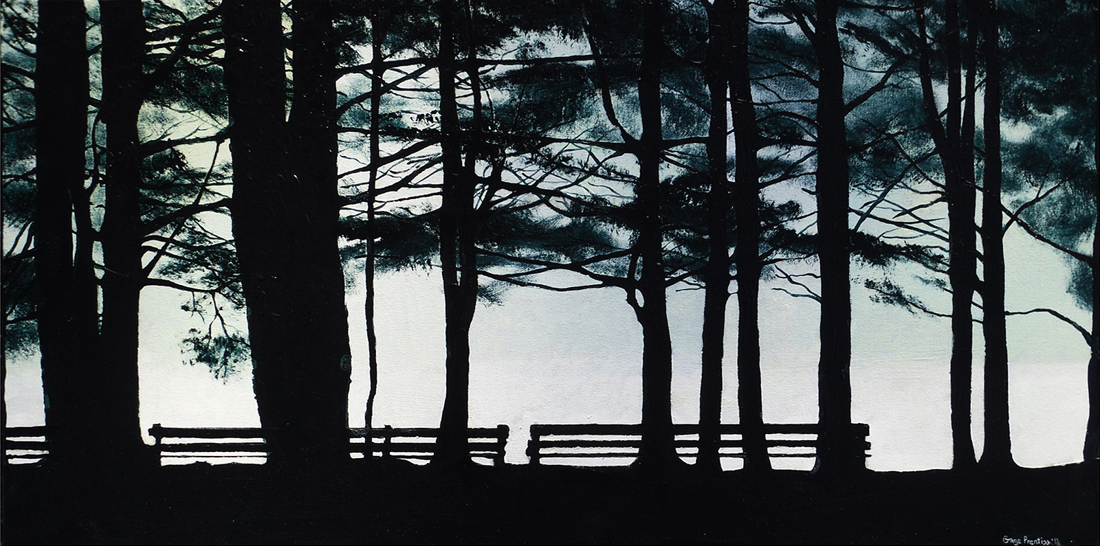 I like to walk through Lincoln Woods in the early morning. My mind is fresh, and the sun is pushing it’s light through the leaves from the East. The light casts long shadows and silhouette the trunks in high contrast. When I squint my eyes it almost seems like the shadows are standing up with the glimmering, green light of spring. There is a neutral quality to that time and place, a quality in the light and the objects that obscure, that ask the viewer what they feel. What will the light reveal? What will the shadows conceal?