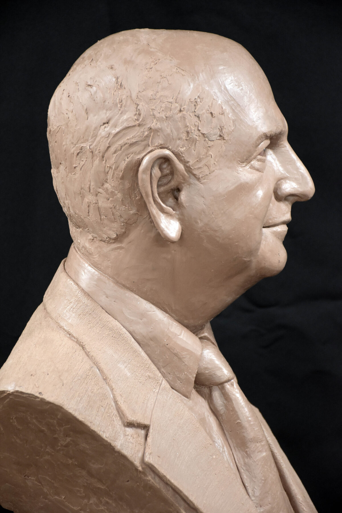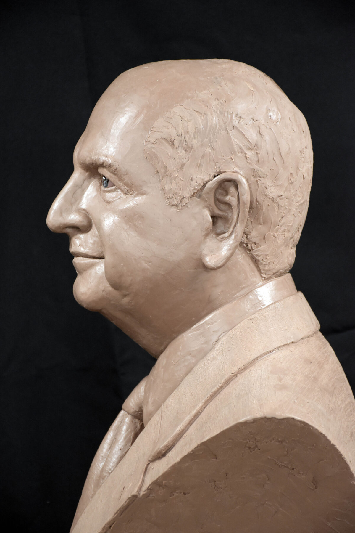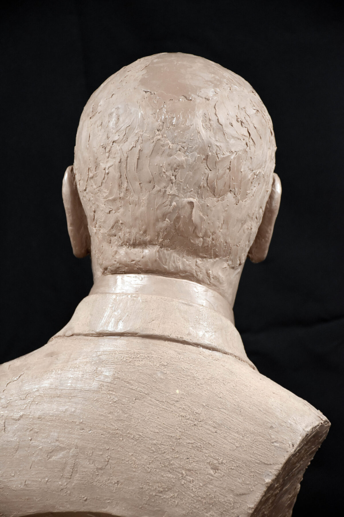 Here are images of the finished bronze. The patron wanted a slate black patina to emulate bronze portraits from antiquity. Following those will be the pre-molded piece in Monster Clay. Such different presences.