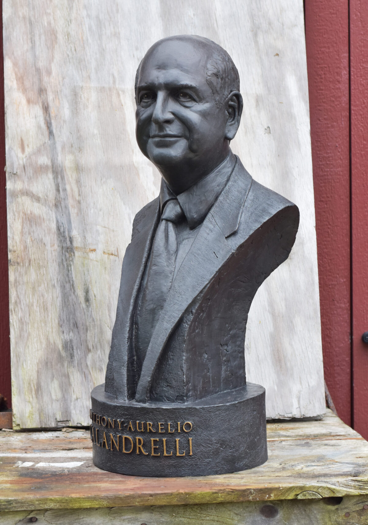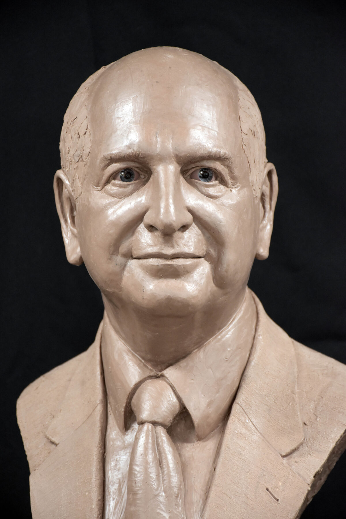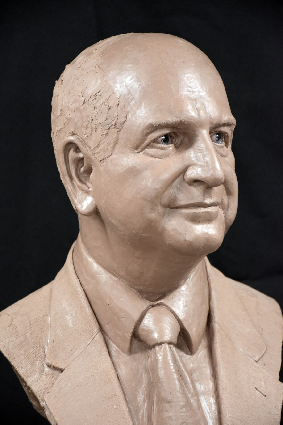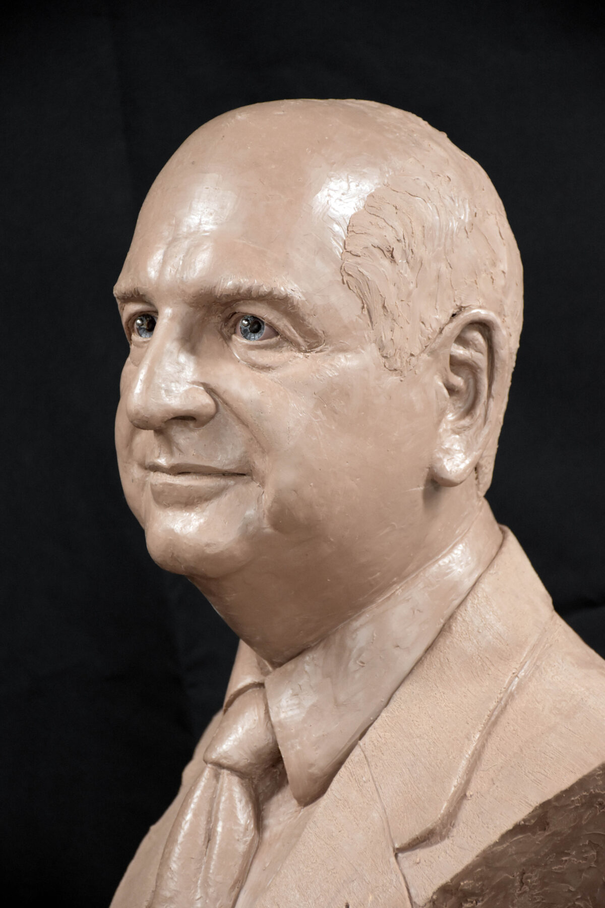 Here are images of the finished bronze. The patron wanted a slate black patina to emulate bronze portraits from antiquity. Following those will be the pre-molded piece in Monster Clay. Such different presences.